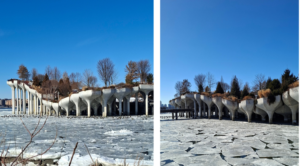 Little Island to z kolei park na palach nad Hudson River. Widowiskowy, niemal futurystyczny. Można go odczytywać jako symbol „doklejania” zieleni do miasta – tam, gdzie brakuje wolnej przestrzeni.