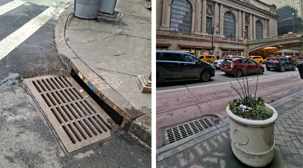 Spacerując po Manhattanie, trudno nie zauważyć ogromnych (jak wszystko w tym mieście) wpustów burzowych w krawężnikach. Ich zadaniem jest szybkie przejęcie wody z ulic i chodników.